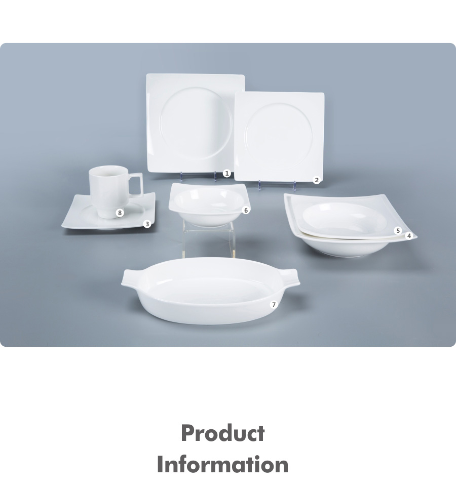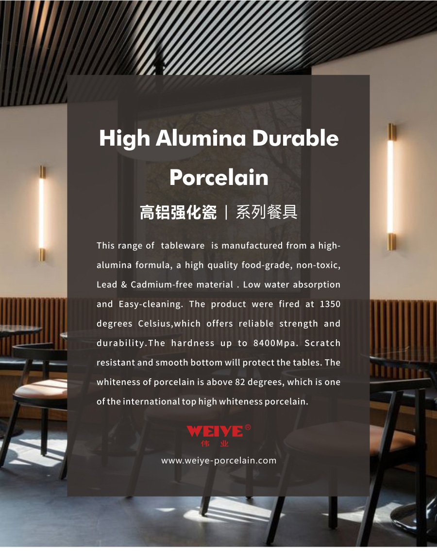 This range of tableware is manufactured from a high-alumina formula, a high quality food-grade, non-toxic, Lead & Cadmium-free material . Low water absorption and Easy-cleaning. The product were fired at 1350 degrees Celsius,which offers reliable strength and durability.The hardness up to 8400Mpa. Scratch resistant and smooth bottom will protect the tables. The whiteness of porcelain is above 82 degrees, which is one of the international top high whiteness porcelain.