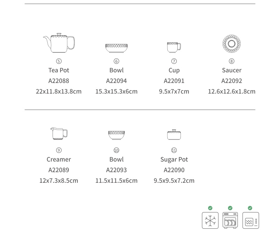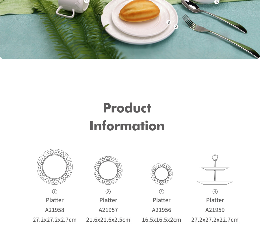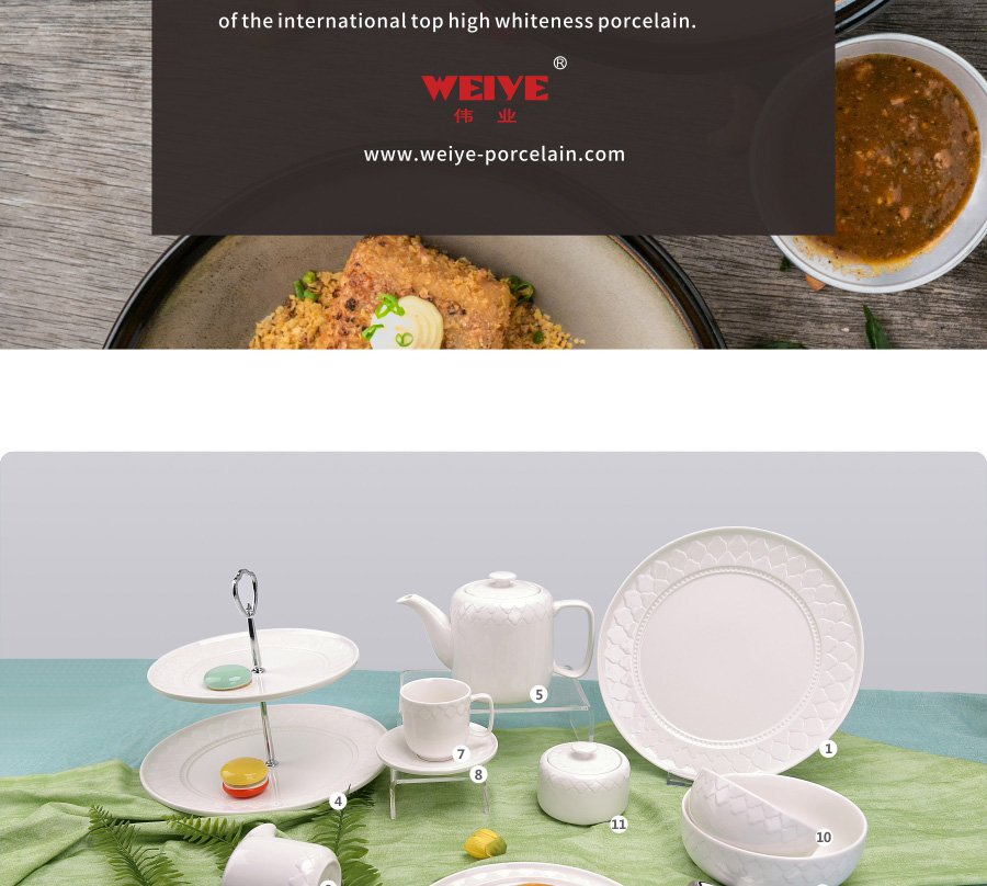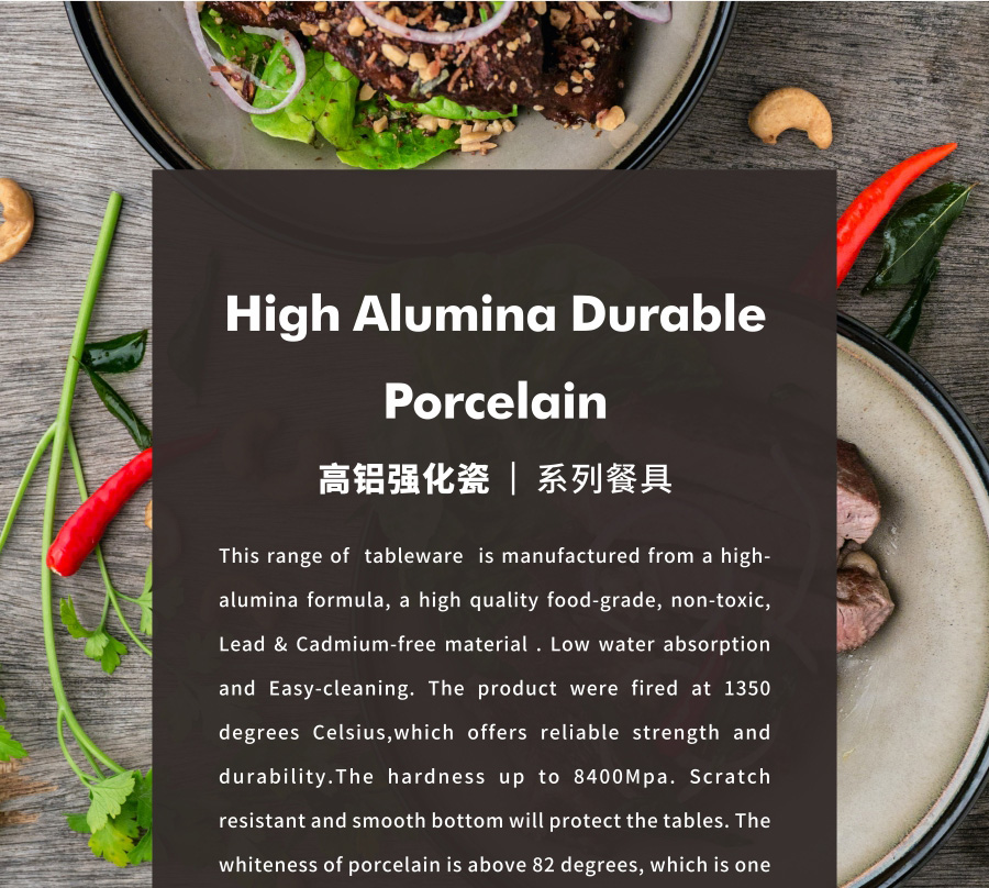 This range of tableware is manufactured from a high-alumina formula, a high quality food-grade, non-toxic, Lead & Cadmium-free material . Low water absorption and Easy-cleaning. The product were fired at 1350 degrees Celsius,which offers reliable strength and durability.The hardness up to 8400Mpa. Scratch resistant and smooth bottom will protect the tables. The whiteness of porcelain is above 82 degrees, which is one of the international top high whiteness porcelain.