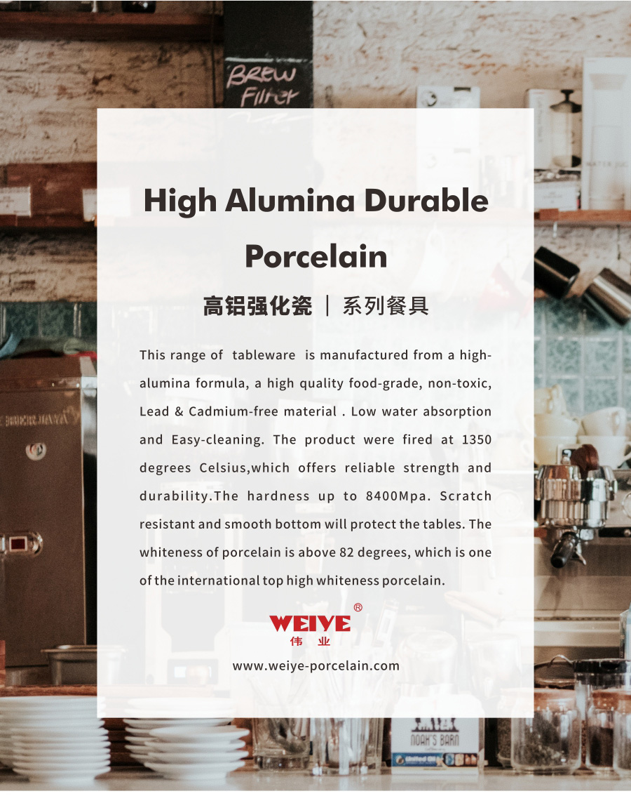 This range of tableware is manufactured from a high-alumina formula, a high quality food-grade, non-toxic, Lead & Cadmium-free material . Low water absorption and Easy-cleaning. The product were fired at 1350 degrees Celsius,which offers reliable strength and durability.The hardness up to 8400Mpa. Scratch resistant and smooth bottom will protect the tables. The whiteness of porcelain is above 82 degrees, which is one of the international top high whiteness porcelain.