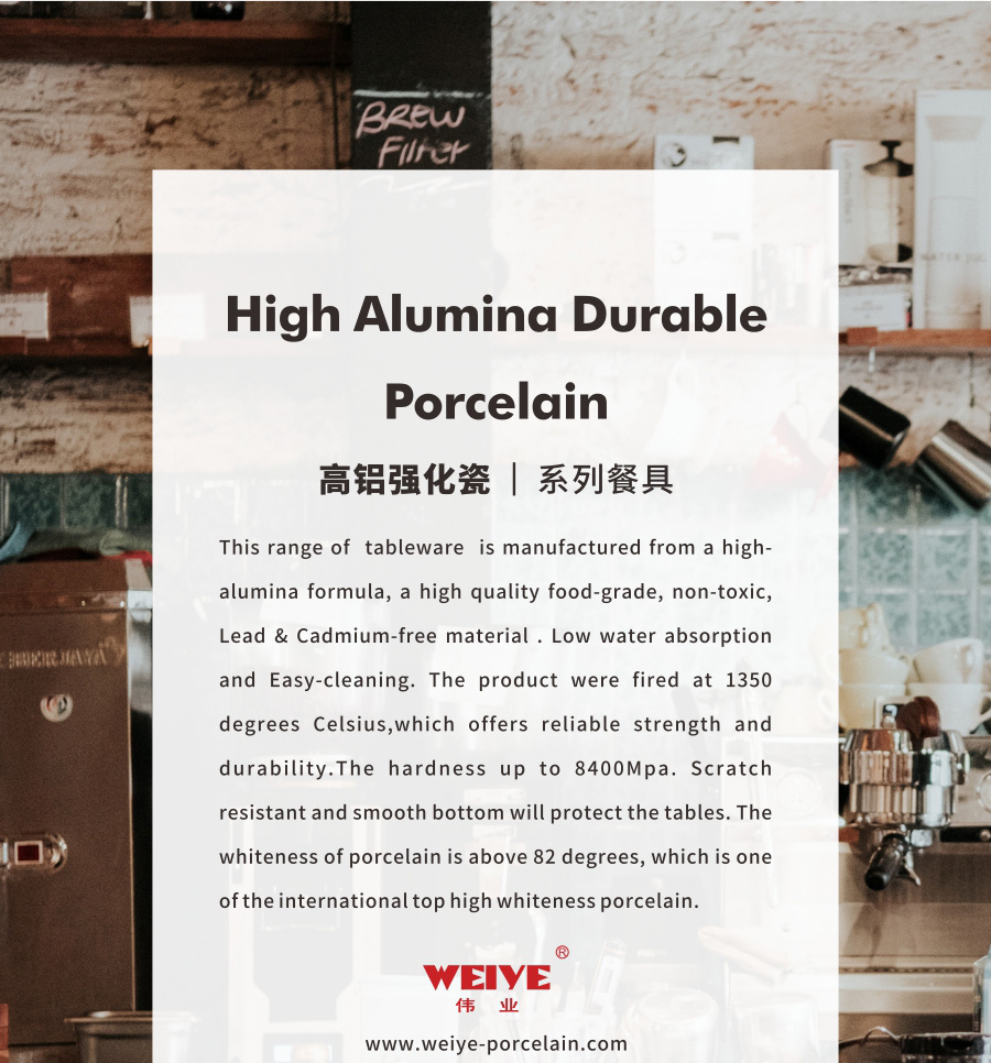 This range of tableware is manufactured from a high-alumina formula, a high quality food-grade, non-toxic, Lead & Cadmium-free material . Low water absorption and Easy-cleaning. The product were fired at 1350 degrees Celsius,which offers reliable strength and durability.The hardness up to 8400Mpa. Scratch resistant and smooth bottom will protect the tables. The whiteness of porcelain is above 82 degrees, which is one of the international top high whiteness porcelain.
