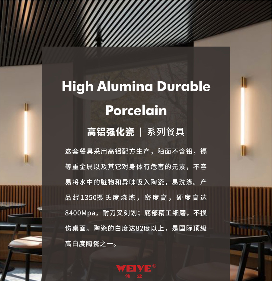 这套餐具采用高铝配方生产,釉面不含铅,镉等重金属以及其它对身体有危害的元素,不容易将水中的脏物和异味吸入陶瓷,易洗涤。产品经1350摄氏度烧炼,密度高,硬度高达8400Mpa,耐刀叉刻划;底部精工细磨,不损伤桌面。陶瓷的白度达82度以上,是国际顶级高白度陶瓷之一。