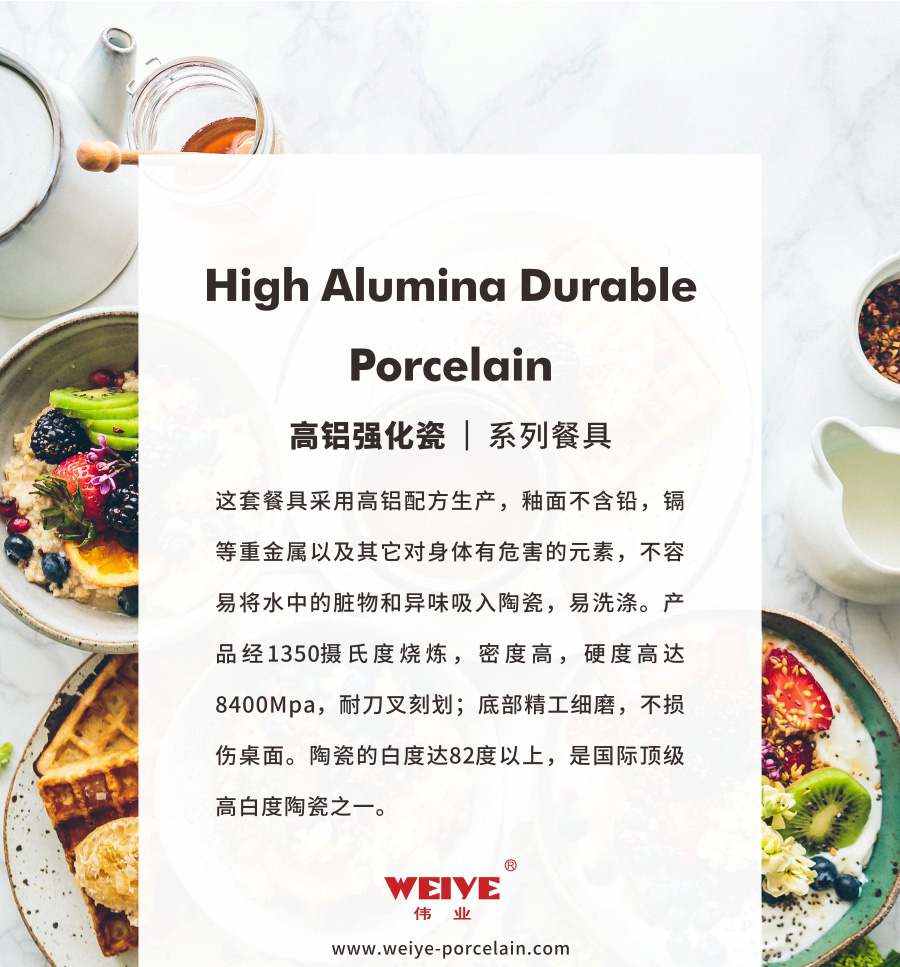这套餐具采用高铝配方生产,釉面不含铅,镉等重金属以及其它对身体有危害的元素,不容易将水中的脏物和异味吸入陶瓷,易洗涤。产品经1350摄氏度烧炼,密度高,硬度高达8400Mpa,耐刀叉刻划;底部精工细磨,不损伤桌面。陶瓷的白度达82度以上,是国际顶级高白度陶瓷之一。