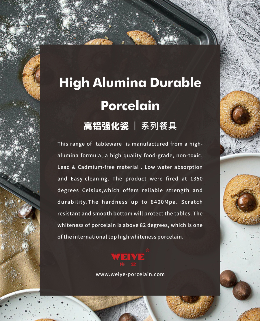 This range of tableware is manufactured from a high-alumina formula, a high quality food-grade, non-toxic, Lead & Cadmium-free material . Low water absorption and Easy-cleaning. The product were fired at 1350 degrees Celsius,which offers reliable strength and durability.The hardness up to 8400Mpa. Scratch resistant and smooth bottom will protect the tables. The whiteness of porcelain is above 82 degrees, which is one of the international top high whiteness porcelain.
