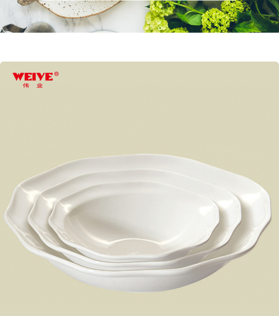 This range of tableware is manufactured from a high-alumina formula, a high quality food-grade, non-toxic, Lead & Cadmium-free material . Low water absorption and Easy-cleaning. The product were fired at 1350 degrees Celsius,which offers reliable strength and durability.The hardness up to 8400Mpa. Scratch resistant and smooth bottom will protect the tables. The whiteness of porcelain is above 82 degrees, which is one of the international top high whiteness porcelain.