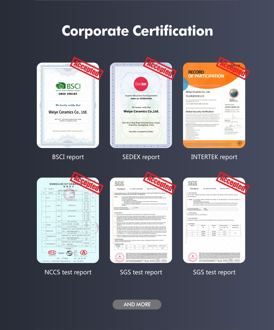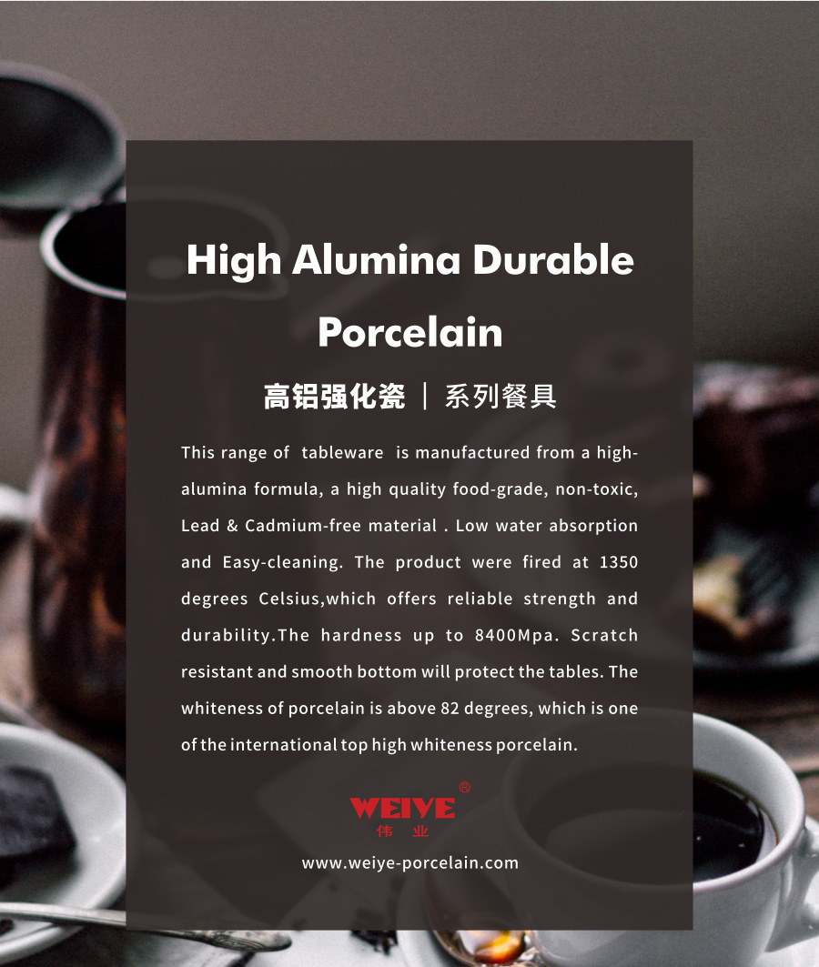 This range of tableware is manufactured from a high-alumina formula, a high quality food-grade, non-toxic, Lead & Cadmium-free material . Low water absorption and Easy-cleaning. The product were fired at 1350 degrees Celsius,which offers reliable strength and durability.The hardness up to 8400Mpa. Scratch resistant and smooth bottom will protect the tables. The whiteness of porcelain is above 82 degrees, which is one of the international top high whiteness porcelain.