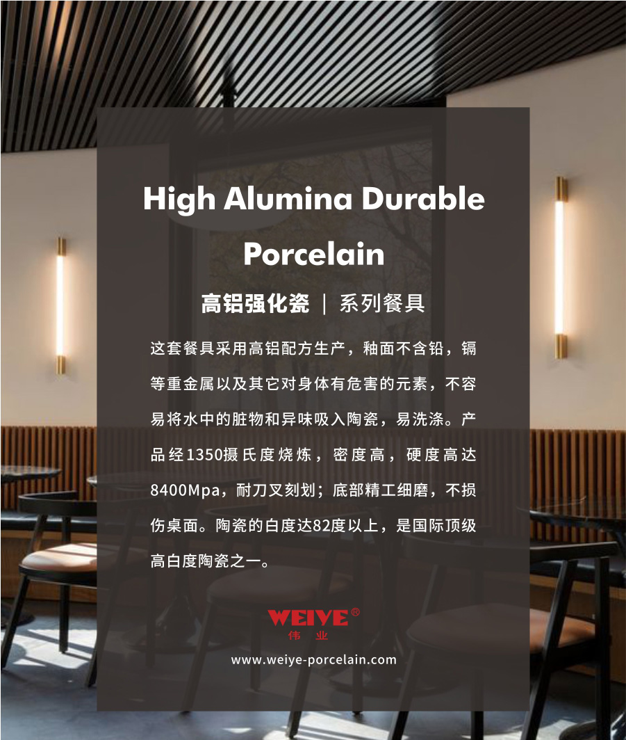 这套餐具采用高铝配方生产,釉面不含铅,镉等重金属以及其它对身体有危害的元素,不容易将水中的脏物和异味吸入陶瓷,易洗涤。产品经1350摄氏度烧炼,密度高,硬度高达8400Mpa,耐刀叉刻划;底部精工细磨,不损伤桌面。陶瓷的白度达82度以上,是国际顶级高白度陶瓷之一。