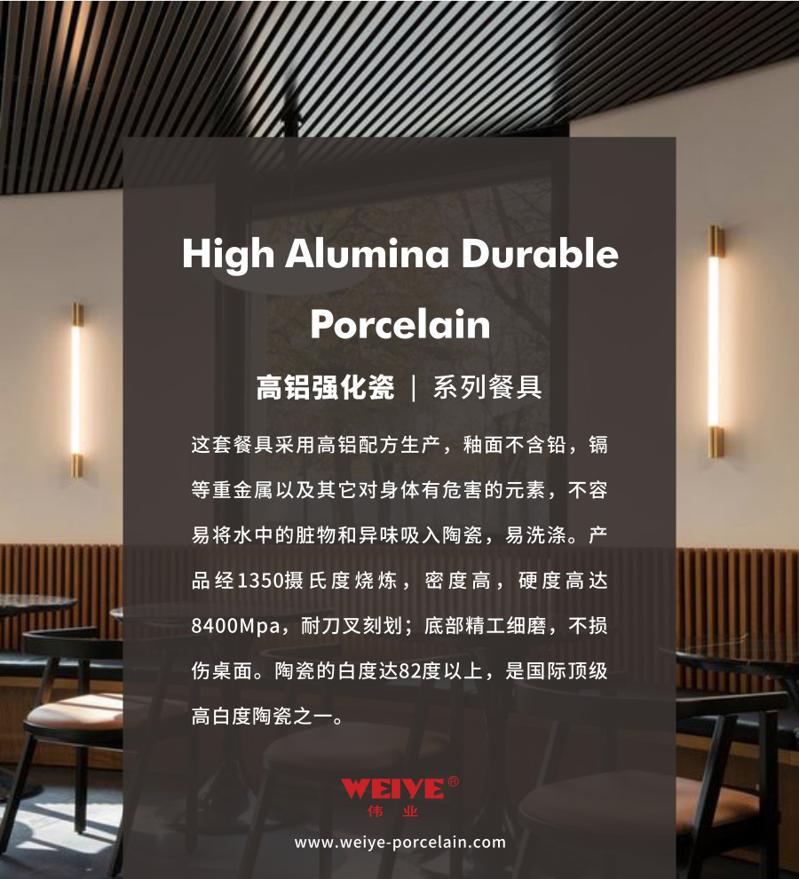 这套餐具采用高铝配方生产,釉面不含铅,镉等重金属以及其它对身体有危害的元素,不容易将水中的脏物和异味吸入陶瓷,易洗涤。产品经1350摄氏度烧炼,密度高,硬度高达8400Mpa,耐刀叉刻划;底部精工细磨,不损伤桌面。陶瓷的白度达82度以上,是国际顶级高白度陶瓷之一。