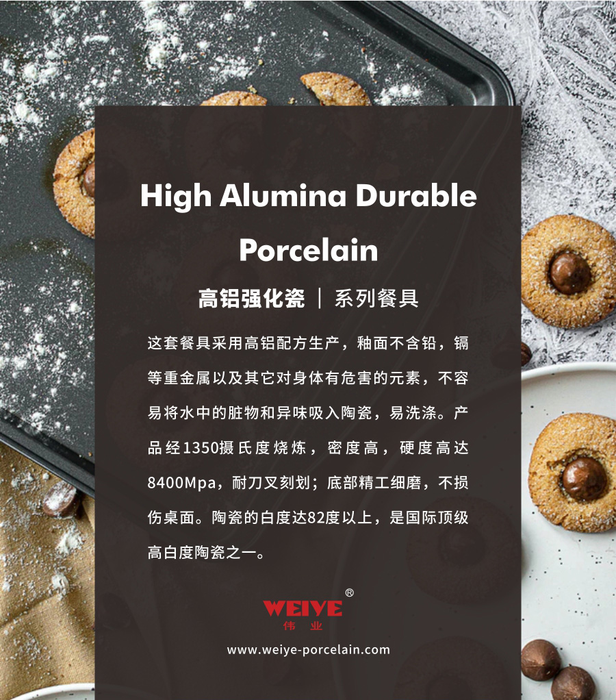 这套餐具采用高铝配方生产,釉面不含铅,镉等重金属以及其它对身体有危害的元素,不容易将水中的脏物和异味吸入陶瓷,易洗涤。产品经1350摄氏度烧炼,密度高,硬度高达8400Mpa,耐刀叉刻划;底部精工细磨,不损伤桌面。陶瓷的白度达82度以上,是国际顶级高白度陶瓷之一。