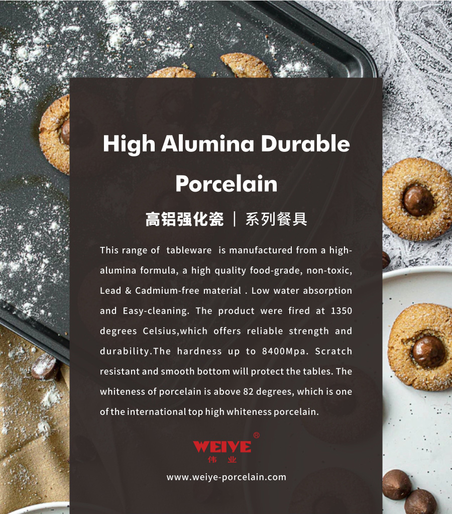 This range of tableware is manufactured from a high-alumina formula, a high quality food-grade, non-toxic, Lead & Cadmium-free material . Low water absorption and Easy-cleaning. The product were fired at 1350 degrees Celsius,which offers reliable strength and durability.The hardness up to 8400Mpa. Scratch resistant and smooth bottom will protect the tables. The whiteness of porcelain is above 82 degrees, which is one of the international top high whiteness porcelain.