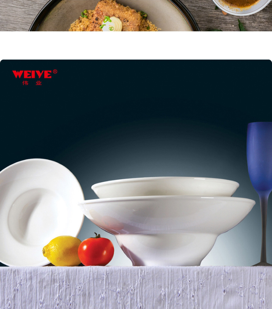 This range of tableware is manufactured from a high-alumina formula, a high quality food-grade, non-toxic, Lead & Cadmium-free material . Low water absorption and Easy-cleaning. The product were fired at 1350 degrees Celsius,which offers reliable strength and durability.The hardness up to 8400Mpa. Scratch resistant and smooth bottom will protect the tables. The whiteness of porcelain is above 82 degrees, which is one of the international top high whiteness porcelain.